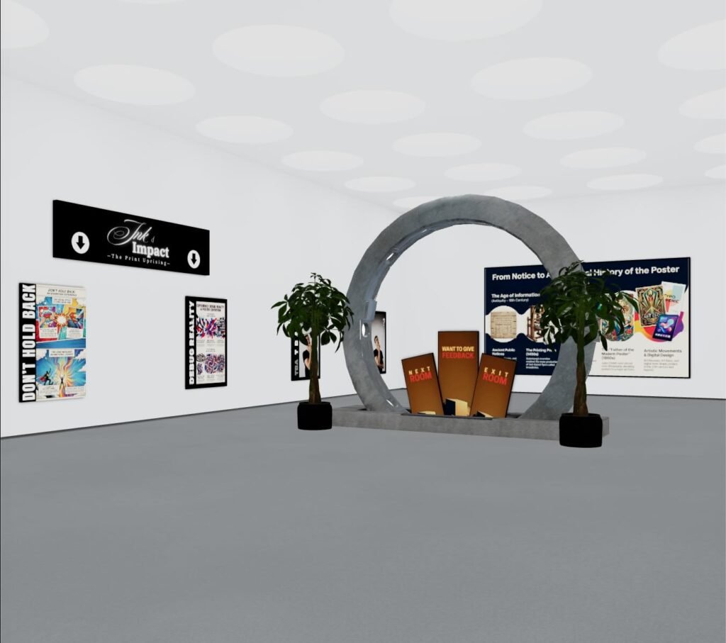 The galleries conceptualize text art – supported by images and graphics – in order to trigger explorative deep thinking. Sound and spatial design is part of the experience, not only wrapping for the TxTArt Posters.
